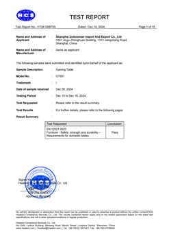 Productos principales:Sillas de oficina, escritorios de oficina, sillas de juegos, mesas y sillas de exterior, muebles de sala de estar